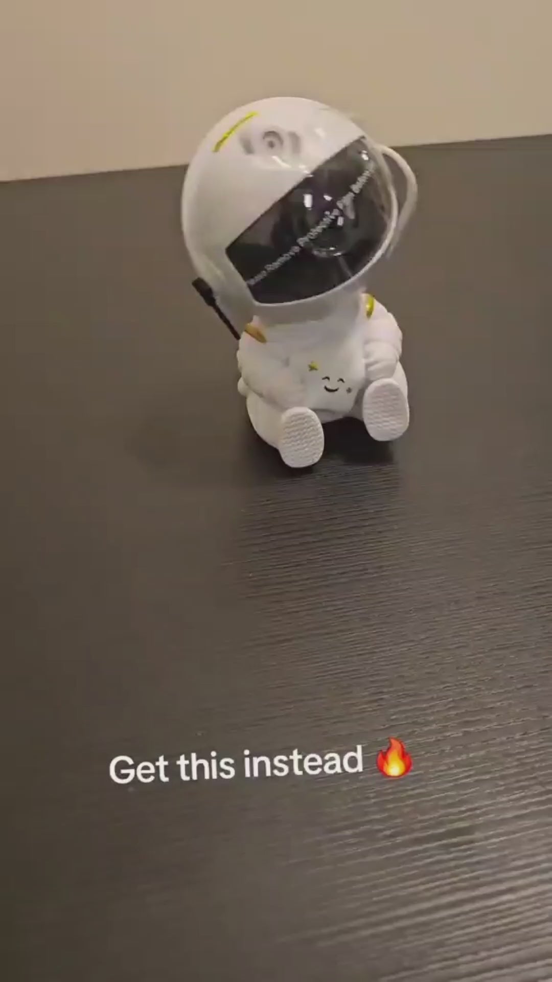 Astronaut-style projector with adjustable head and removable moon base. Both stylish decor and relaxing night light in one.